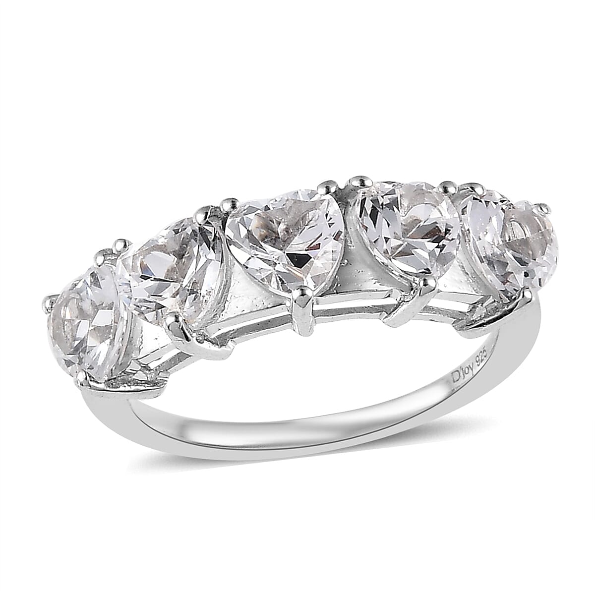 White Topaz 5 Stone Heart Ring in Platinum Over Sterling Silver (Size 6.0) 3.00 ctw