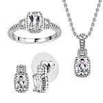 White Topaz and White Sapphire Halo Earrings, Ring (Size 7.0) and Pendant in Platinum Over Sterling Silver with Stainless Steel Necklace 20 Inches 3.75 ctw