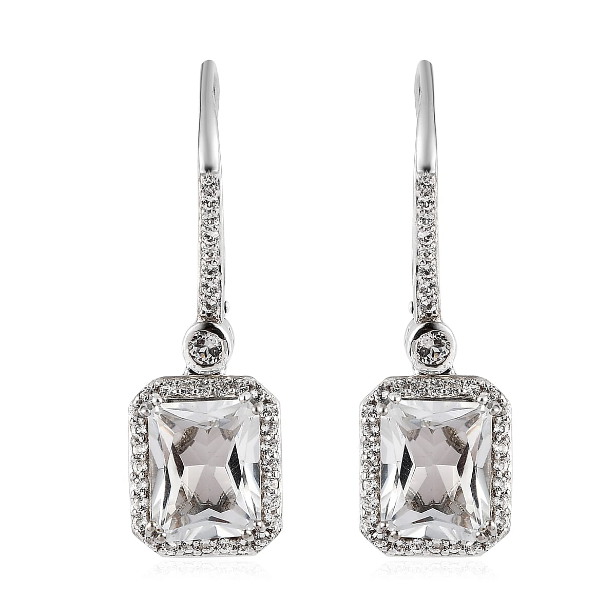 White Topaz Dangling Earrings in Platinum Over Sterling Silver 9.25 ctw