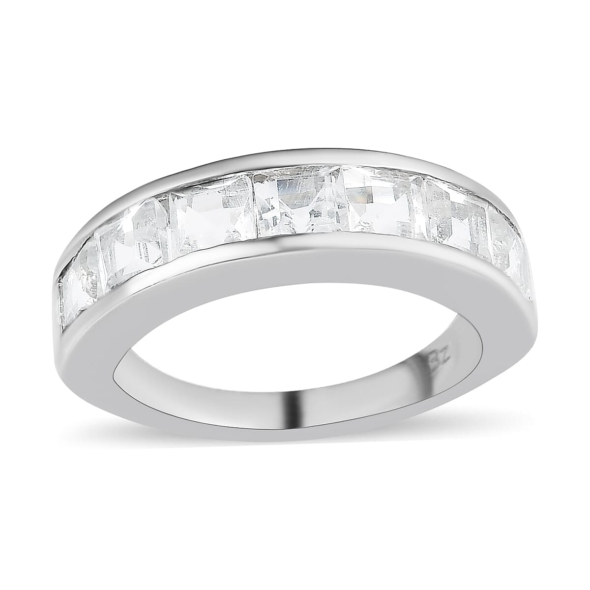 This genuine gemstone ring is a stunning piece of jewelry inspired by eternity. This ring features a row of baguette gemstones arranged on the front side. This eternity ring for women is crafted in durable and long-lasting platinum over the bronze band. This half-eternity ring is designed to be elegant and versatile, making it perfect for everyday wear or special occasions. The gemstones used in this ring are genuine and of high quality, ensuring that they will maintain their beauty and sparkle for years to come. With its timeless design and luxurious finish, this band ring will become a cherished addition to any jewelry collection.