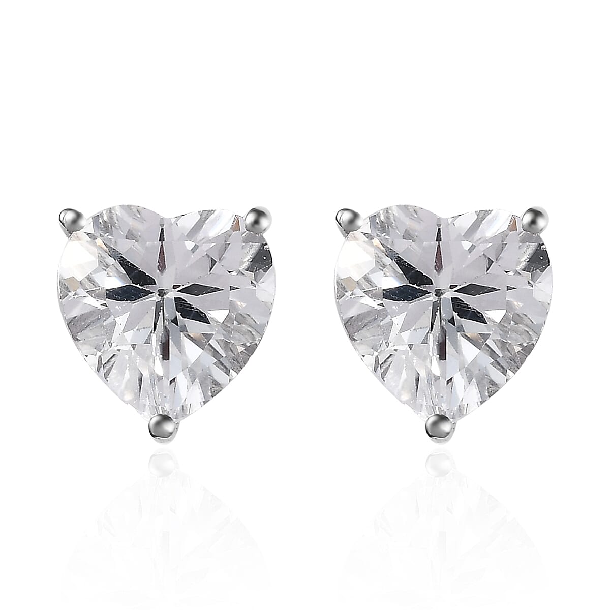 White Topaz Heart Stud Earrings in Platinum Over Sterling Silver 6.25 ctw