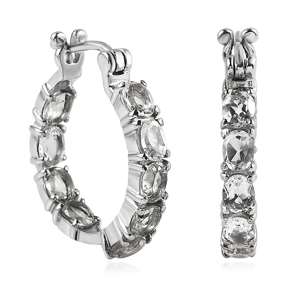 White Topaz Inside Out Hoop Earrings in Stainless Steel 5.25 ctw
