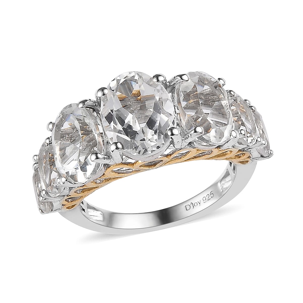 The white topaz ring is an eye-catching piece of jewelry that combines timeless elegance with modern sophistication. This stunning ring features seven sparkling white topaz stones, expertly cut and set in a durable and beautiful vermeil yellow gold and platinum over the sterling silver band. The versatile design of this seven-stone ring makes it perfect for any occasion, from casual outings to special events. This exquisite piece is a valuable addition to any jewelry collection and will become a favorite of those who appreciate quality craftsmanship and elegant beauty.