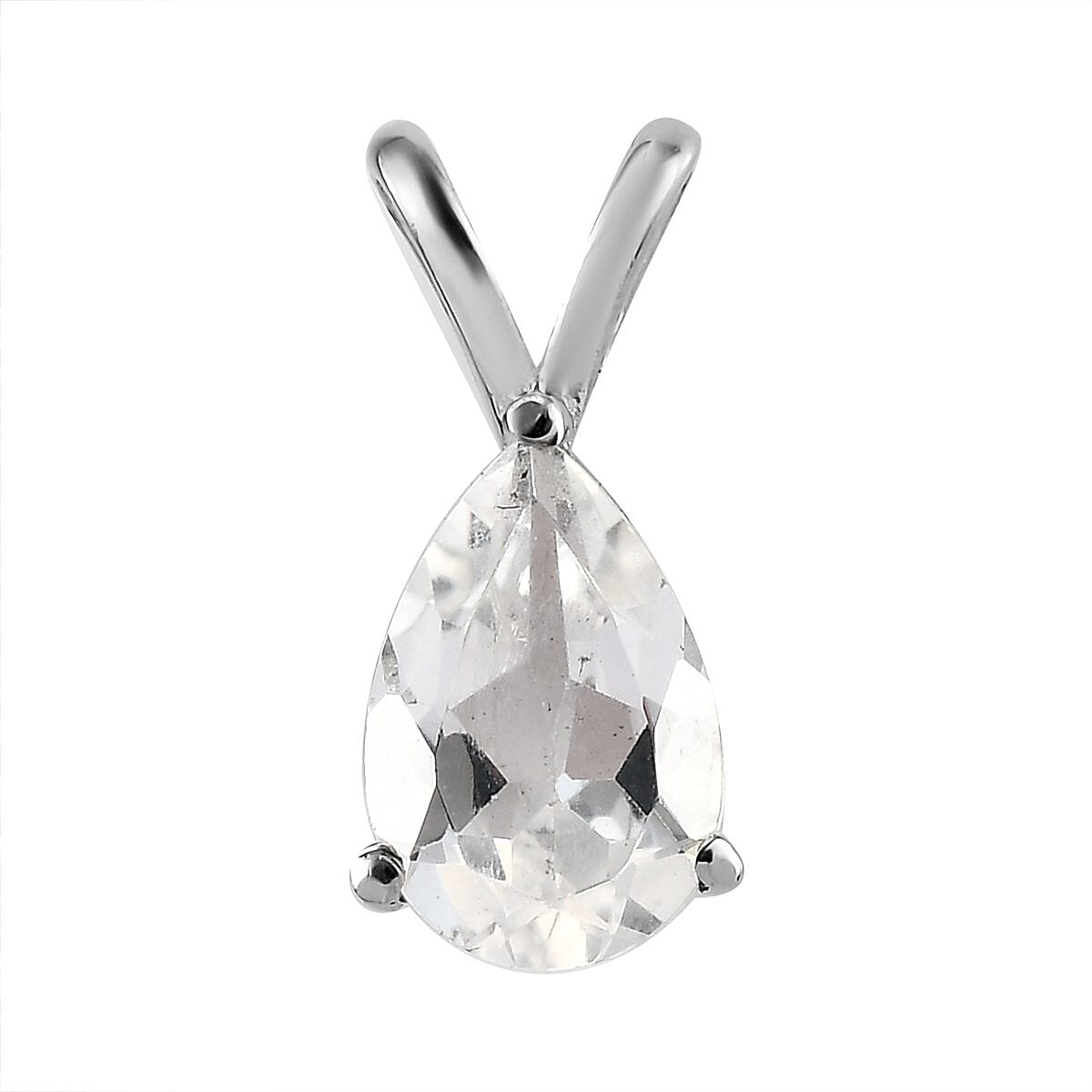 White Topaz Solitaire Pendant in Stainless Steel 1.40 ctw