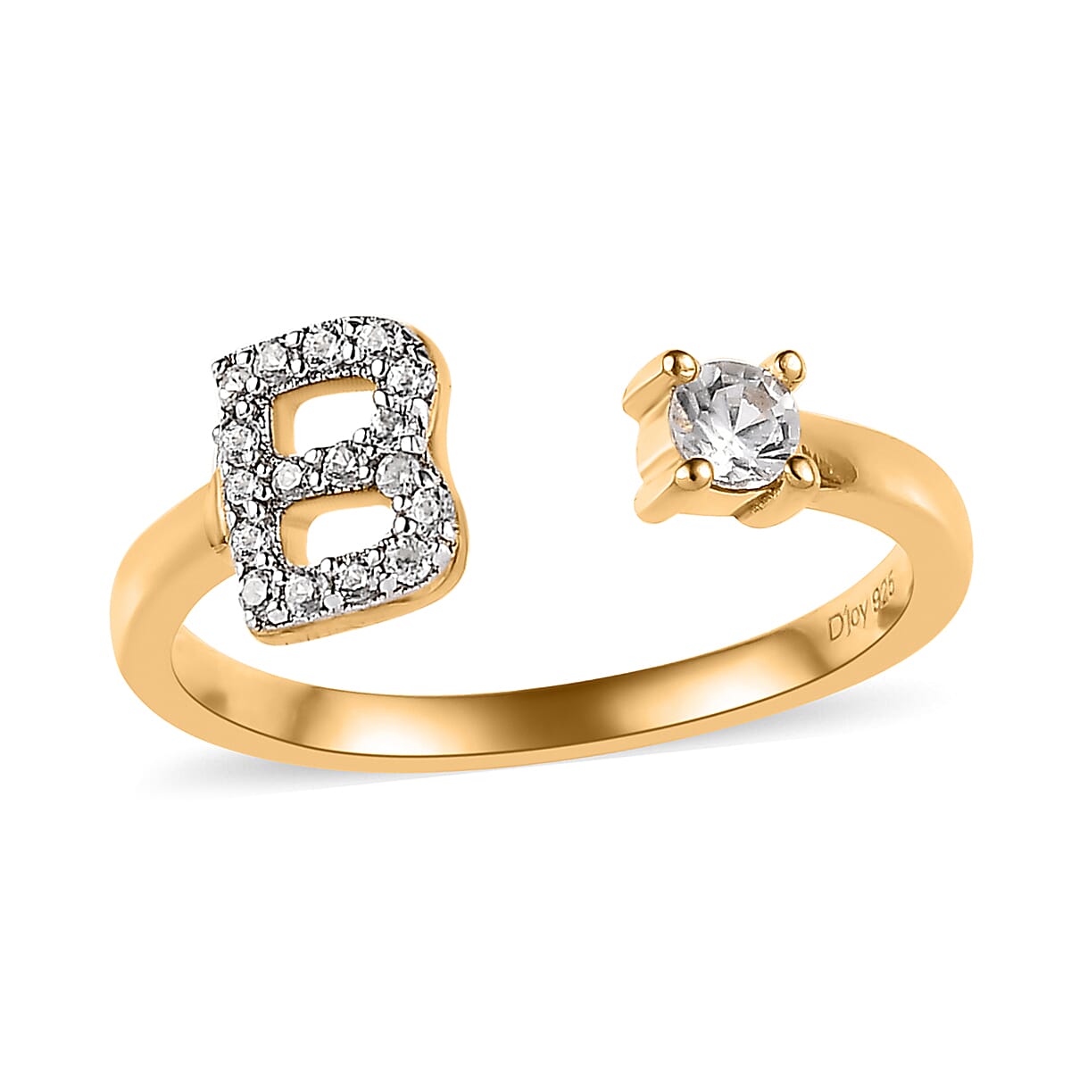 White Zircon Initial B Open Band Ring in Vermeil Yellow Gold Over Sterling Silver (Size 6.0) 0.35 ctw