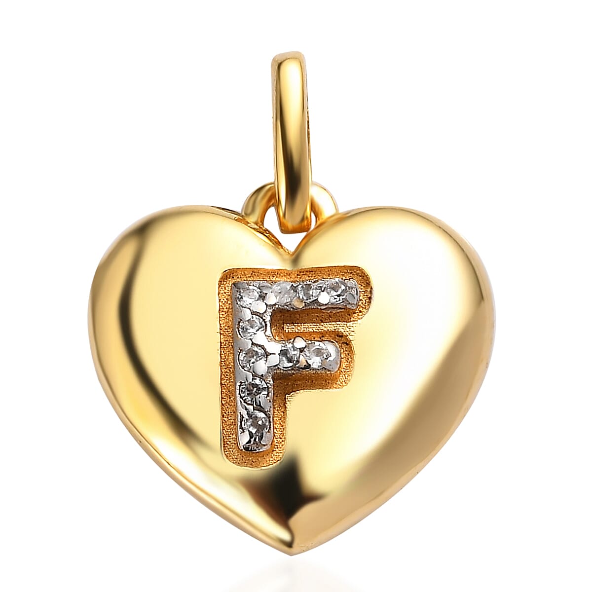 White Zircon Initial F Heart Pendant in Vermeil Yellow Gold Over Sterling Silver 0.07 ctw
