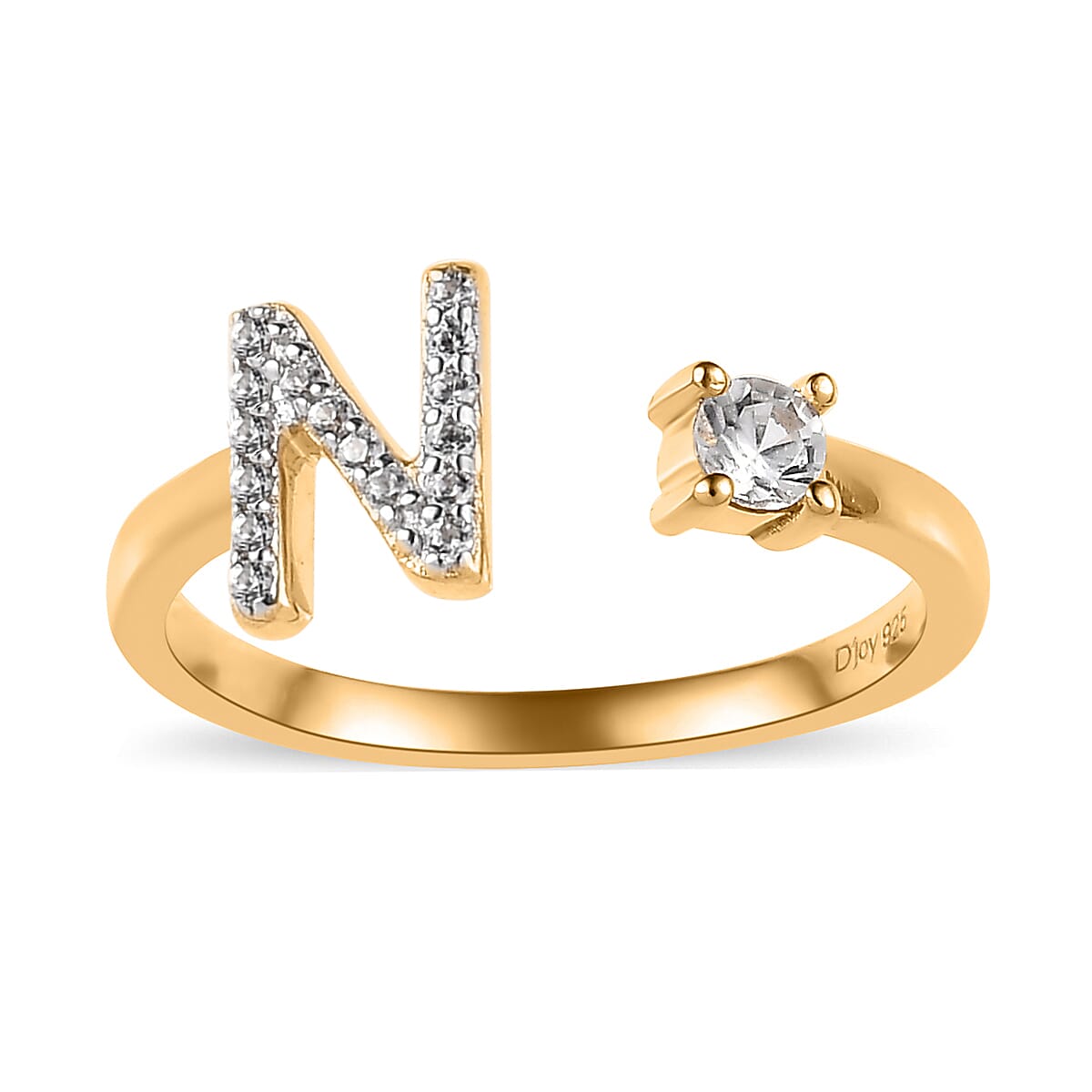 White Zircon Initial N Open Band Ring in Vermeil Yellow Gold Over Sterling Silver (Size 8.0) 0.35 ctw