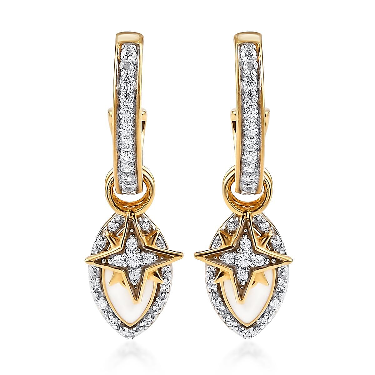 White Zircon Star Burst and Evil Eye Protector Interchangeable Charms Earrings in Vermeil Yellow Gold Over Sterling Silver 0.85 ctw