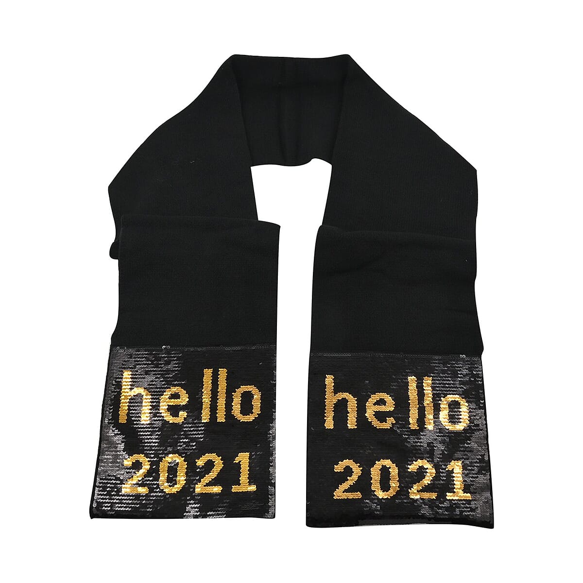WHOOPI GOLDBERG Holiday Collection Hello 2021 Black Sequins Scarf