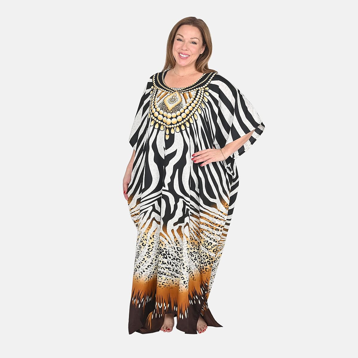 Winlar Black and White Paisley Print Kaftan, Free Size Loose Fit Polyester Kaftan For Women - One Size Fits Most