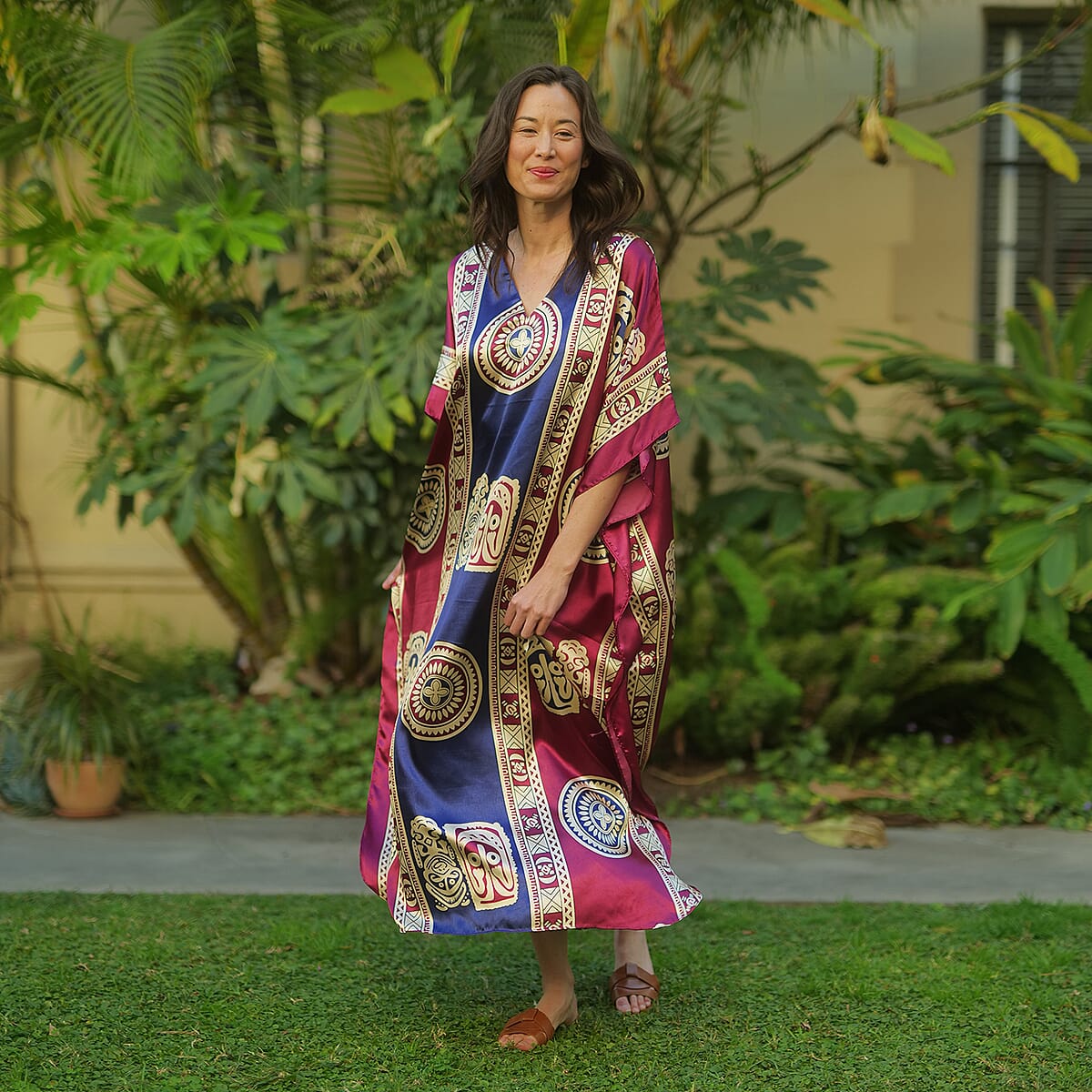 After catching sight of this gorgeous kaftan, you might want to welcome it into your elegant collection with open arms. The genuine satin kaftan flatters with hand screen printed designs. The time has come to put some flair and elegance into your fashion. You don't have to stuck with the standard tank and shorts if it is scorching hot outside. Even when it is humid, you can still put on a dress and feel relaxed and comfy at the same time.