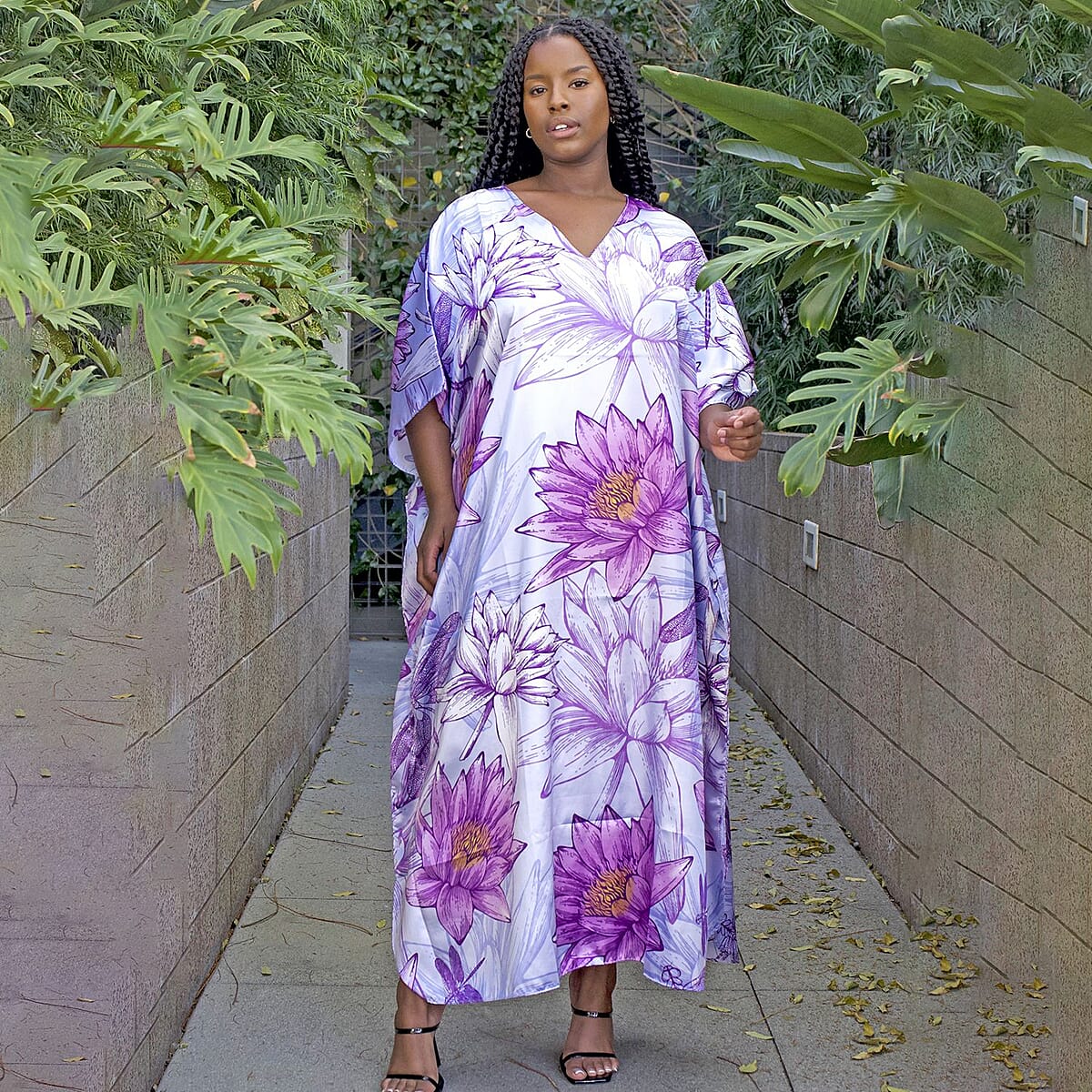 Introducing the Winlar Long Kaftan - the ultimate statement piece for your summer wardrobe! Crafted from luxurious and lightweight fabric, this women’s kaftan dress is designed to keep you cool and comfortable on even the hottest days. The elegant V-neckline adds a touch of sophistication to the overall design, while the long length provides ample coverage and allows for easy movement. The loose, flowy fit is perfect for layering over swimwear or pairing with sandals for a chic and effortless daytime look.
