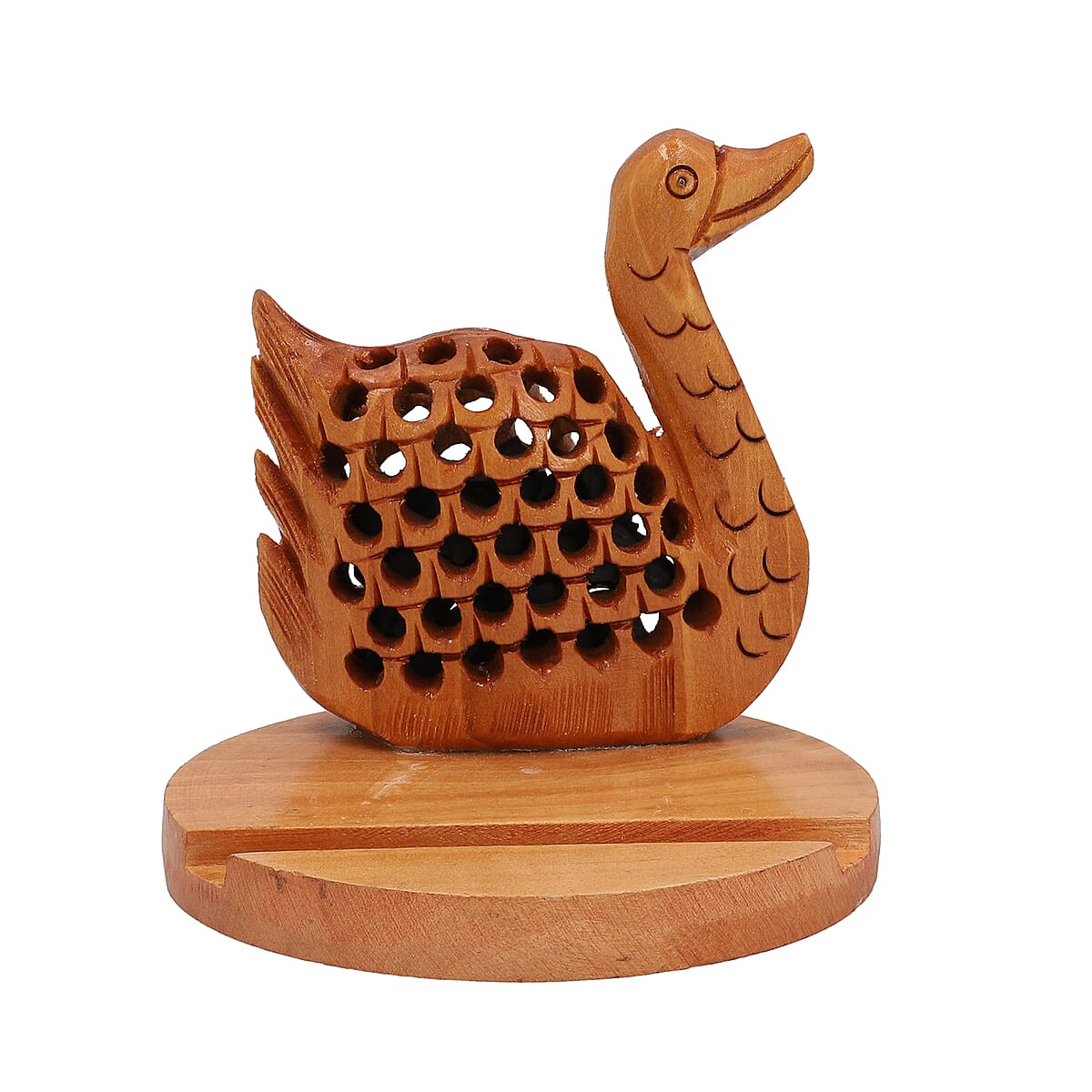 Wooden Hand Carved Swan Mobile Holder with Shungite