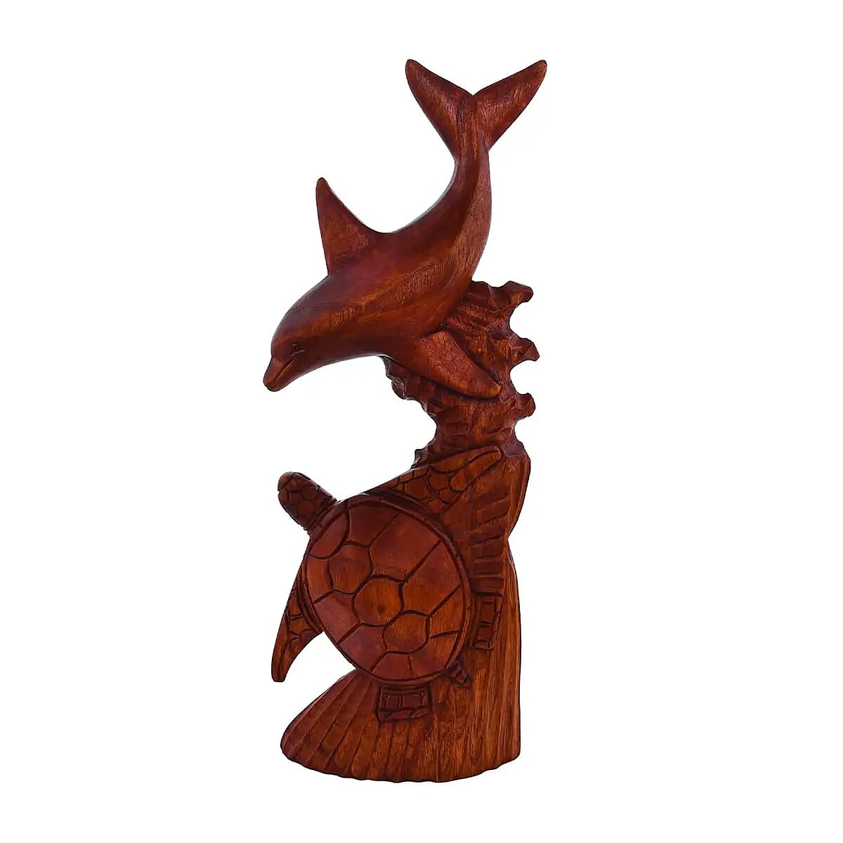 Wooden Sea Creature Turtle & Dolphin Sculpture