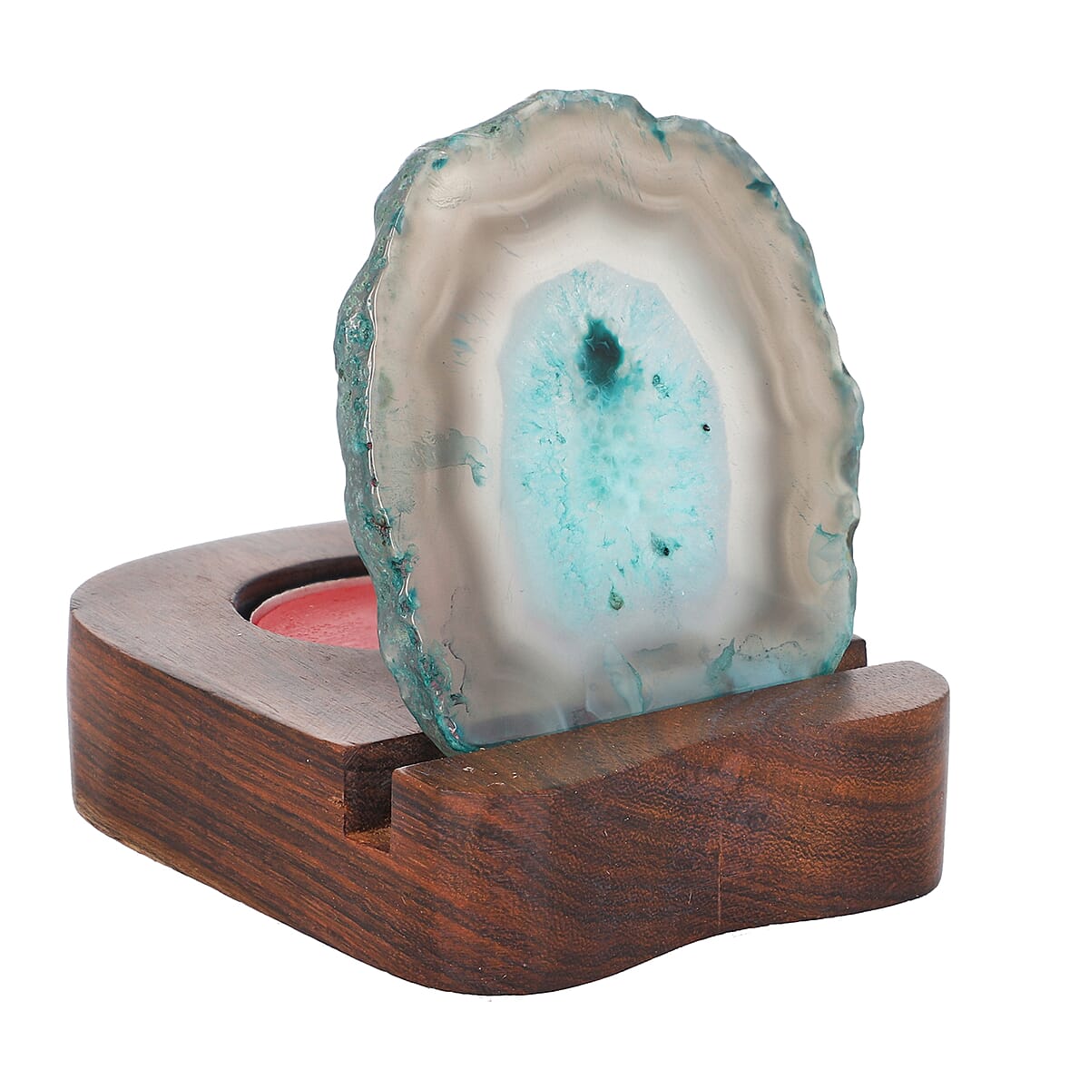 Wooden Stand for Agate Discs and Tea Light - Teal