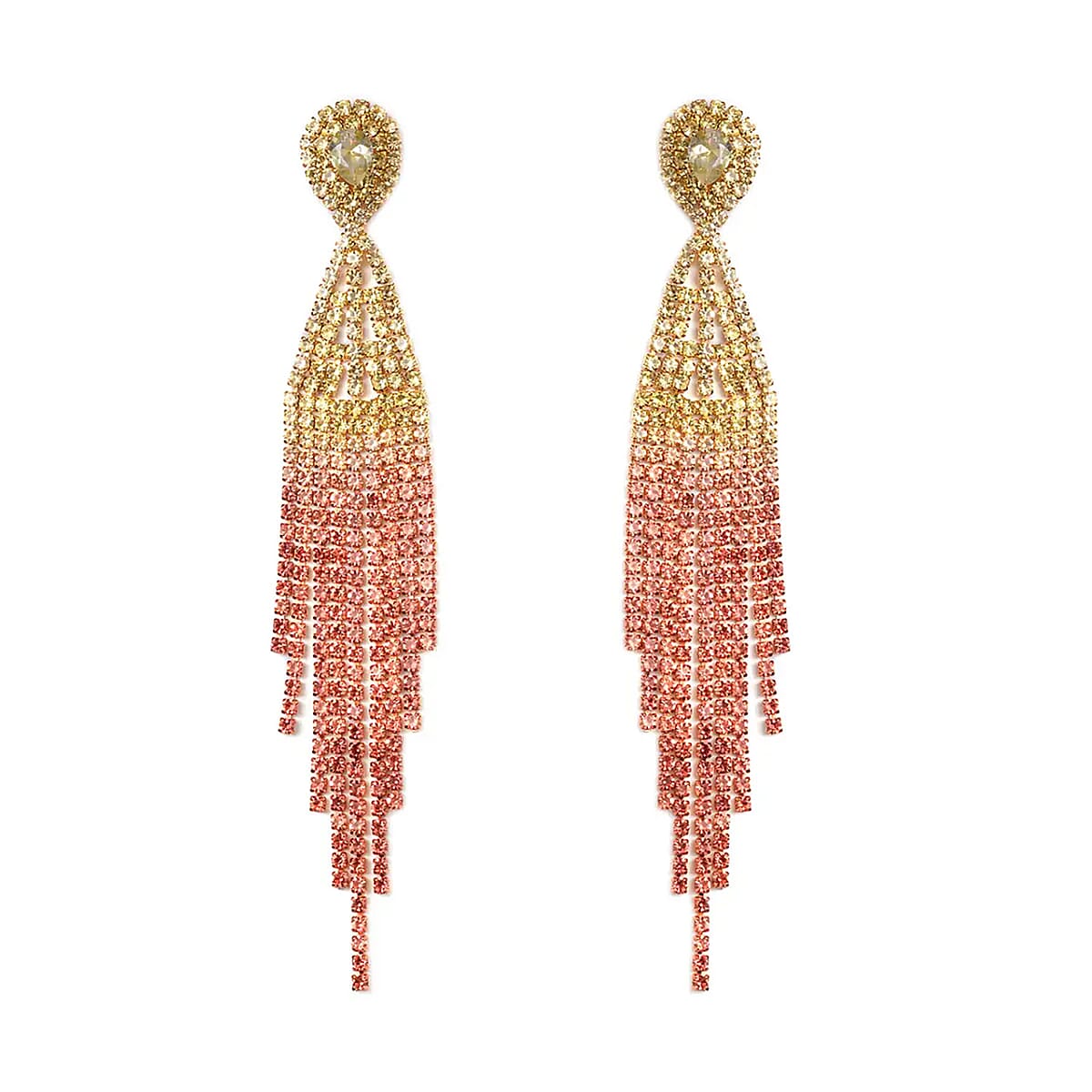 Yellow and Champagne Austrian Crystal Tassels Earrings in Goldtone