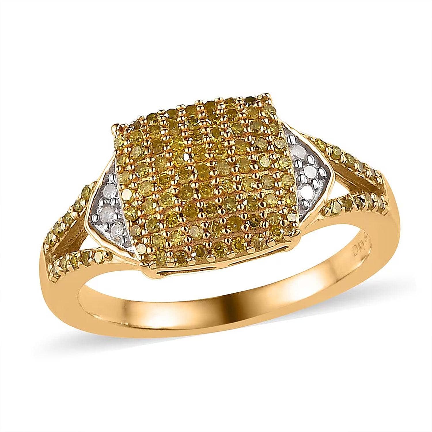 Yellow and White Diamond 0.50 ctw Split Shank Ring in Vermeil Yellow Gold Over Sterling Silver (Size 10.0)