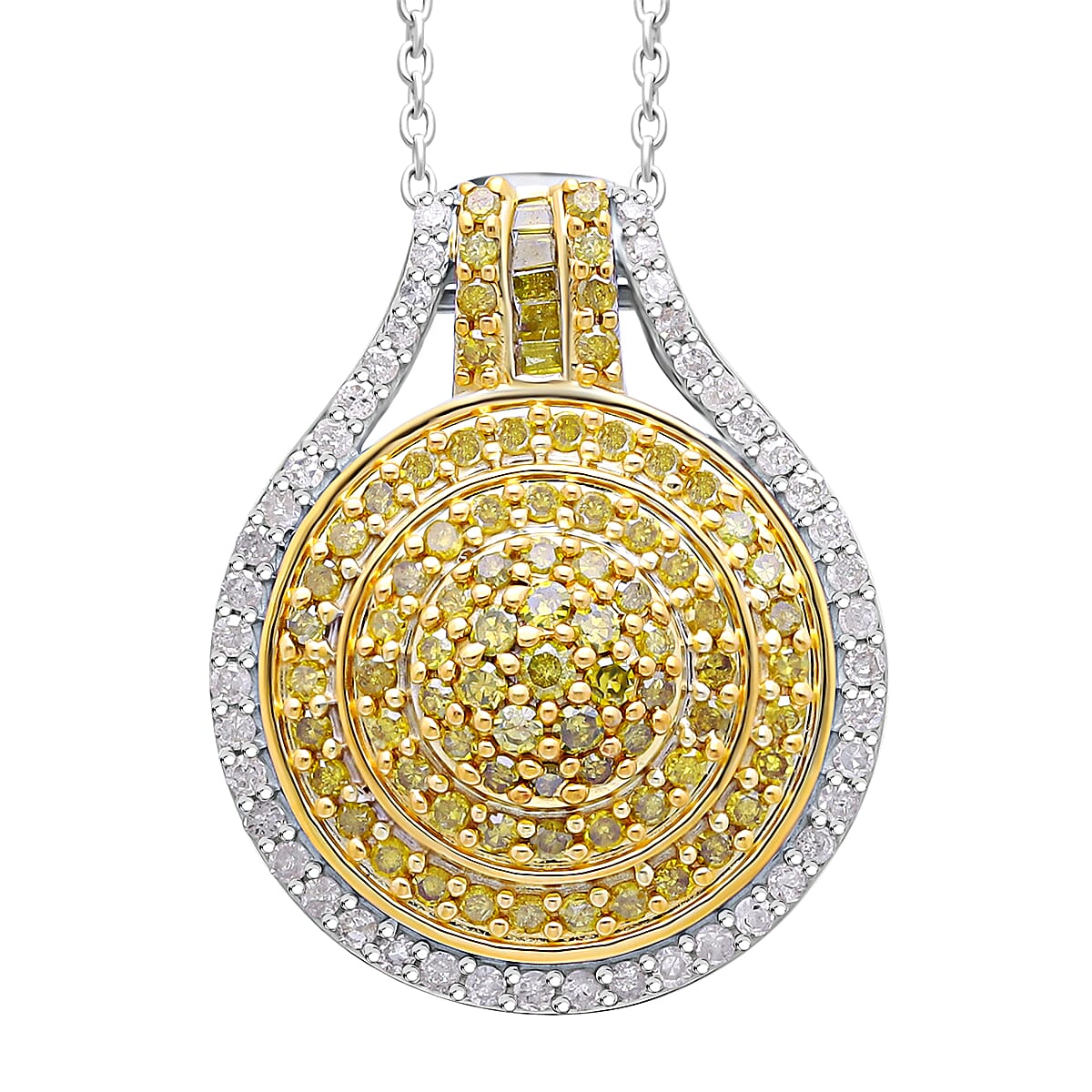 Yellow and White Diamond 1.00 ctw Cluster Pendant without Chain in Platinum Over Sterling Silver