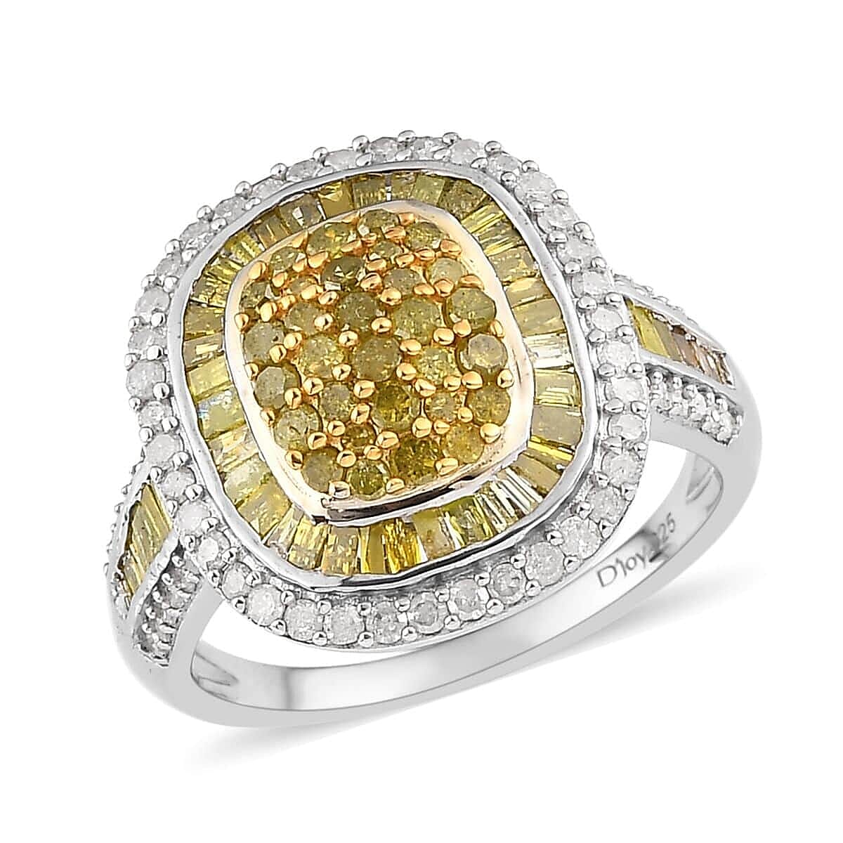 Yellow and White Diamond Ring in Platinum Over Sterling Silver (Size 7.0) 1.50 ctw