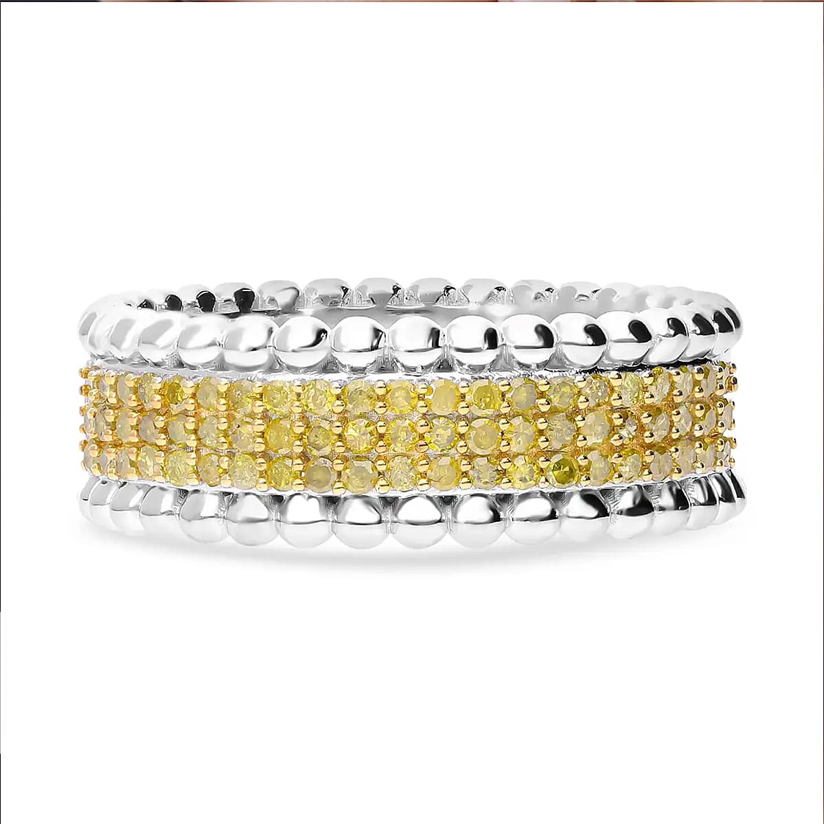 Yellow Diamond 0.50 ctw 3 Row Band Ring in Vermeil YG Over Sterling Silver, Yellow Diamond Jewelry, Birthstone Anniversary Gift For Her (Size 10.00)
