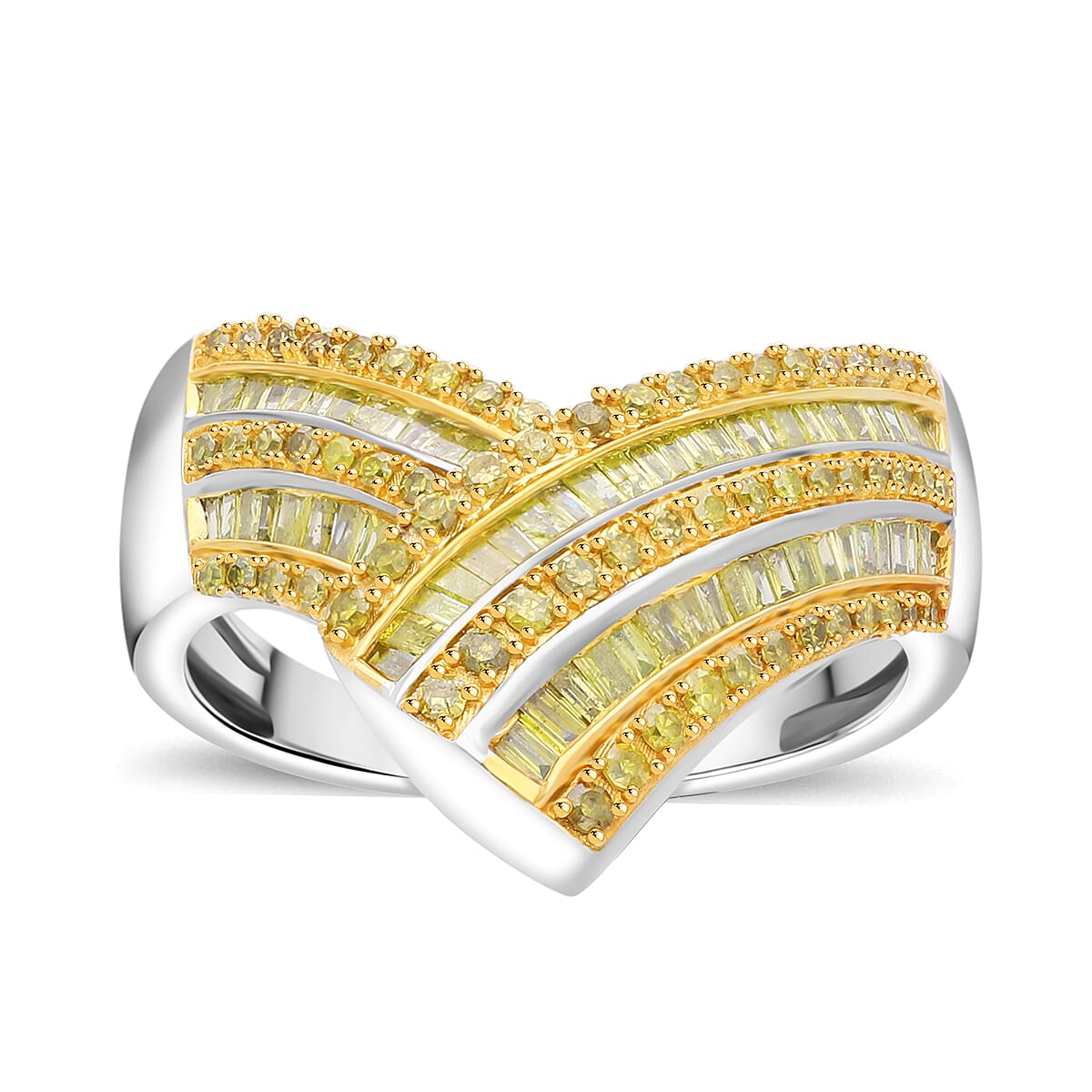 Yellow Diamond 1.00 ctw Ring in Rhodium and Platinum Over Sterling Silver (Size 8.0)