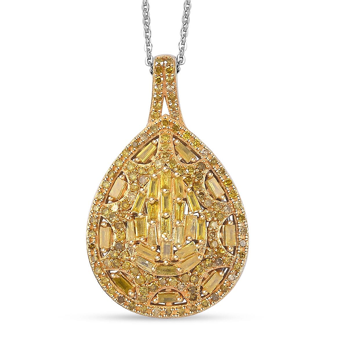 Yellow Diamond 1.00 ctw Victorian Era Pendant Necklace in Rhodium Over Sterling Silver 20 Inches