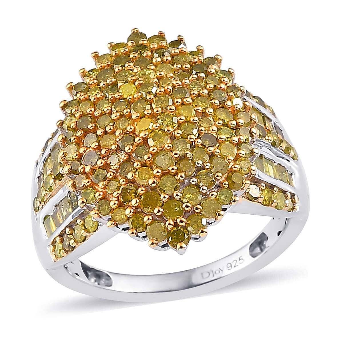 Yellow Diamond Cluster Ring in Platinum Over Sterling Silver (Size 6.0) 2.00 ctw