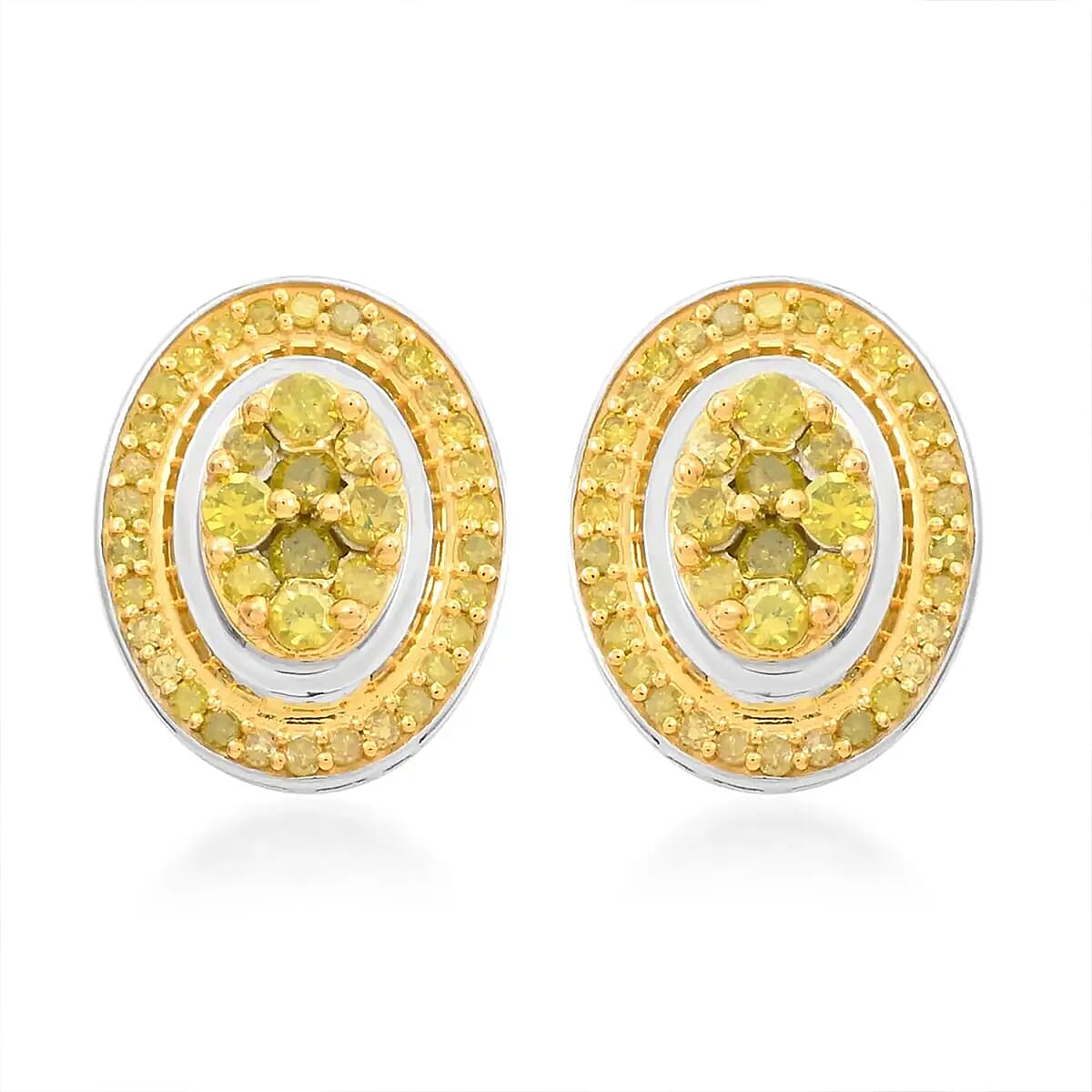 Yellow Diamond Cluster Stud Earrings in Platinum Over Sterling Silver 1.00 ctw