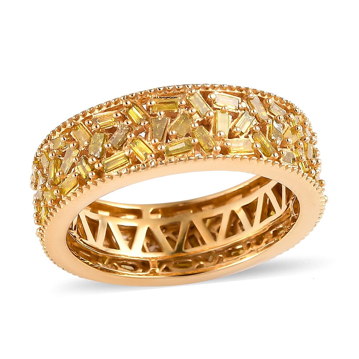 Yellow Diamond Eternity Band Ring in Vermeil Yellow Gold Over Sterling Silver (Size 7.0) 1.50 ctw