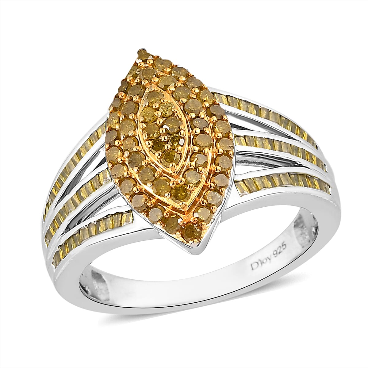 Yellow Diamond Ring in Platinum Over Sterling Silver (Size 10.0) 1.00 ctw