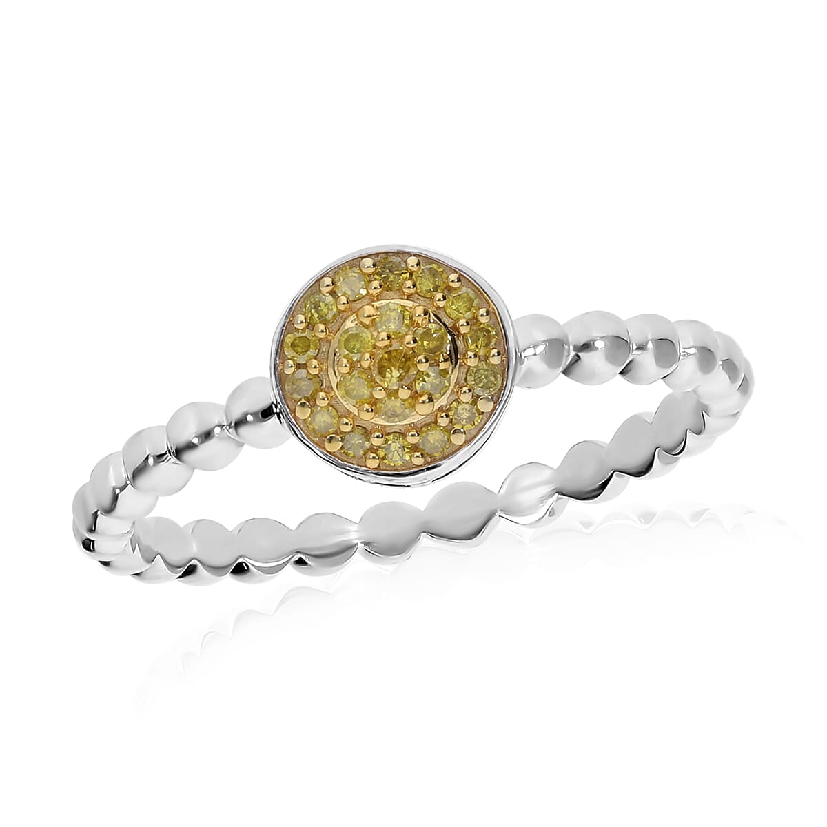 Yellow Diamond Ring in Platinum Over Sterling Silver (Size 6.0) 0.15 ctw