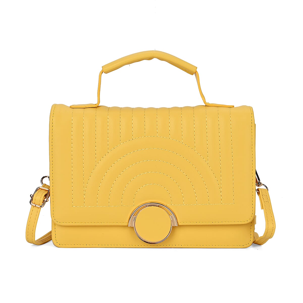 Yellow Faux Leather Crossbody Bag with Shoulder Strap 47 Inches
