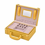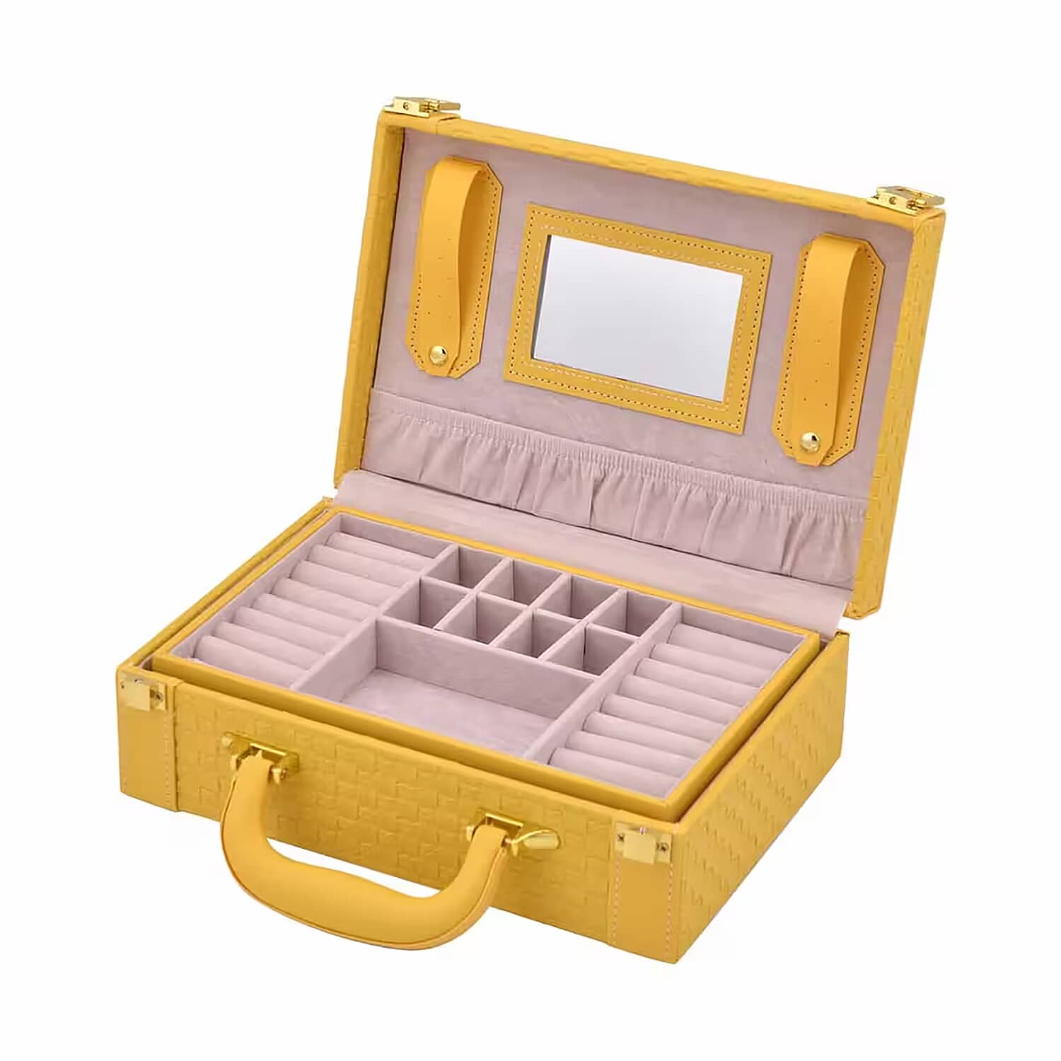 Yellow Faux Leather Woven Briefcase Jewelry Box with Handle and Lock (10x7x3.25 in)