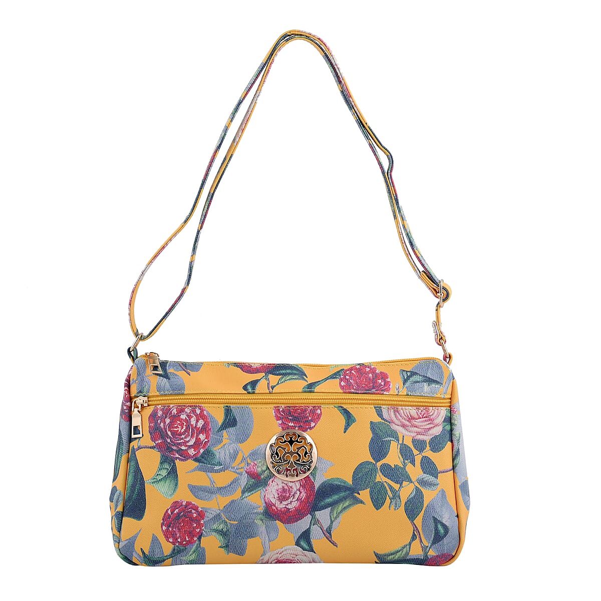Yellow Floral Embossed Pattern Faux Leather Crossbody Bag for Women With Adjustable Shoulder Strap | Shoulder Purse | Crossbody Handbags | Designer Crossbody