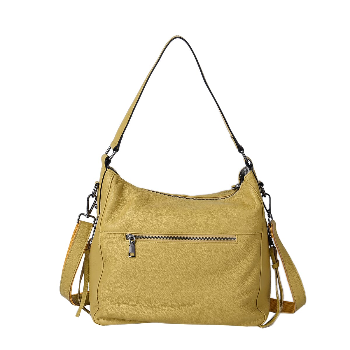 Yellow Genuine Leather Hobo Bag with Swivel Lever Snap for Holding The Keys
