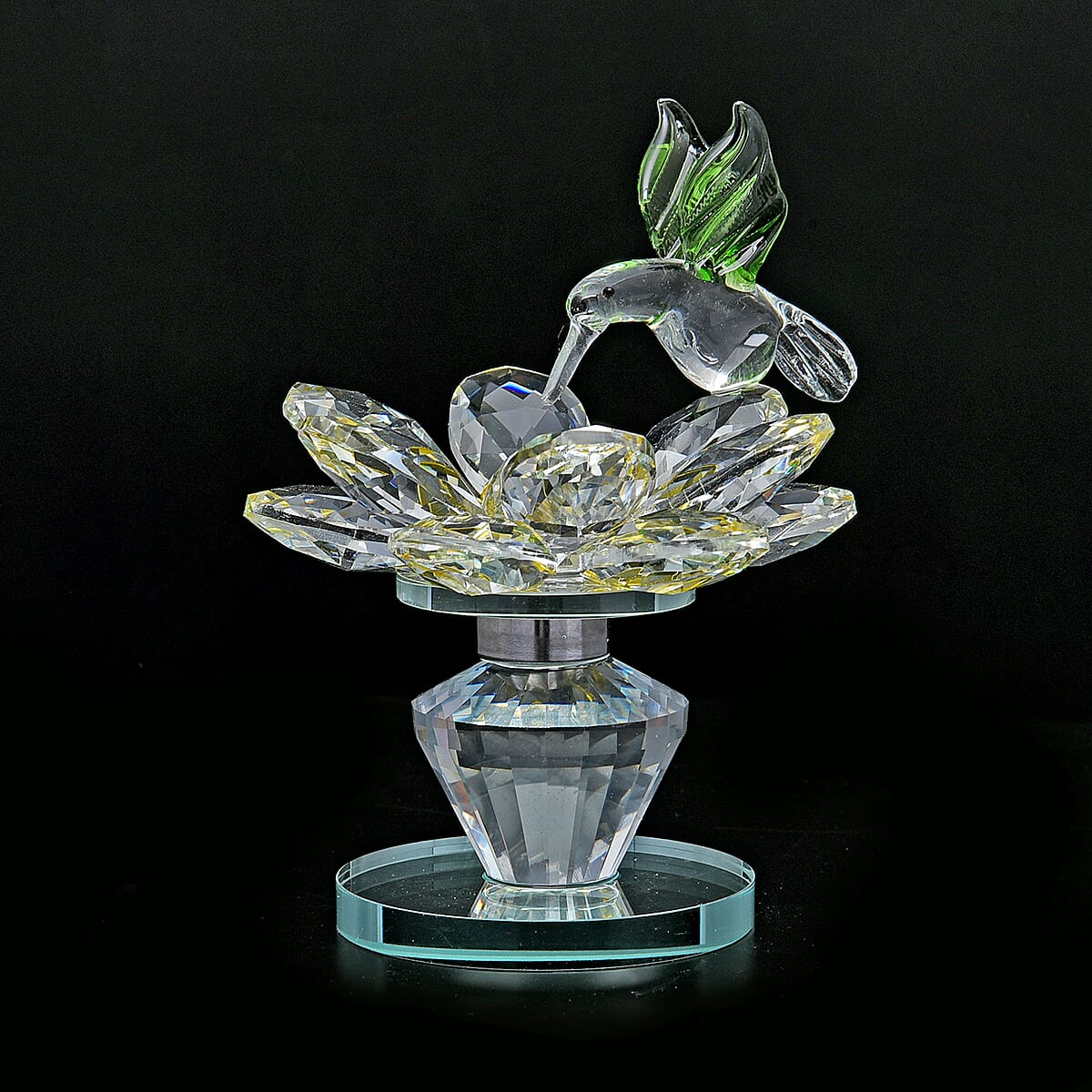 Yellow Glass, Rotatable Crystal Lotus Flower with Hummingbird