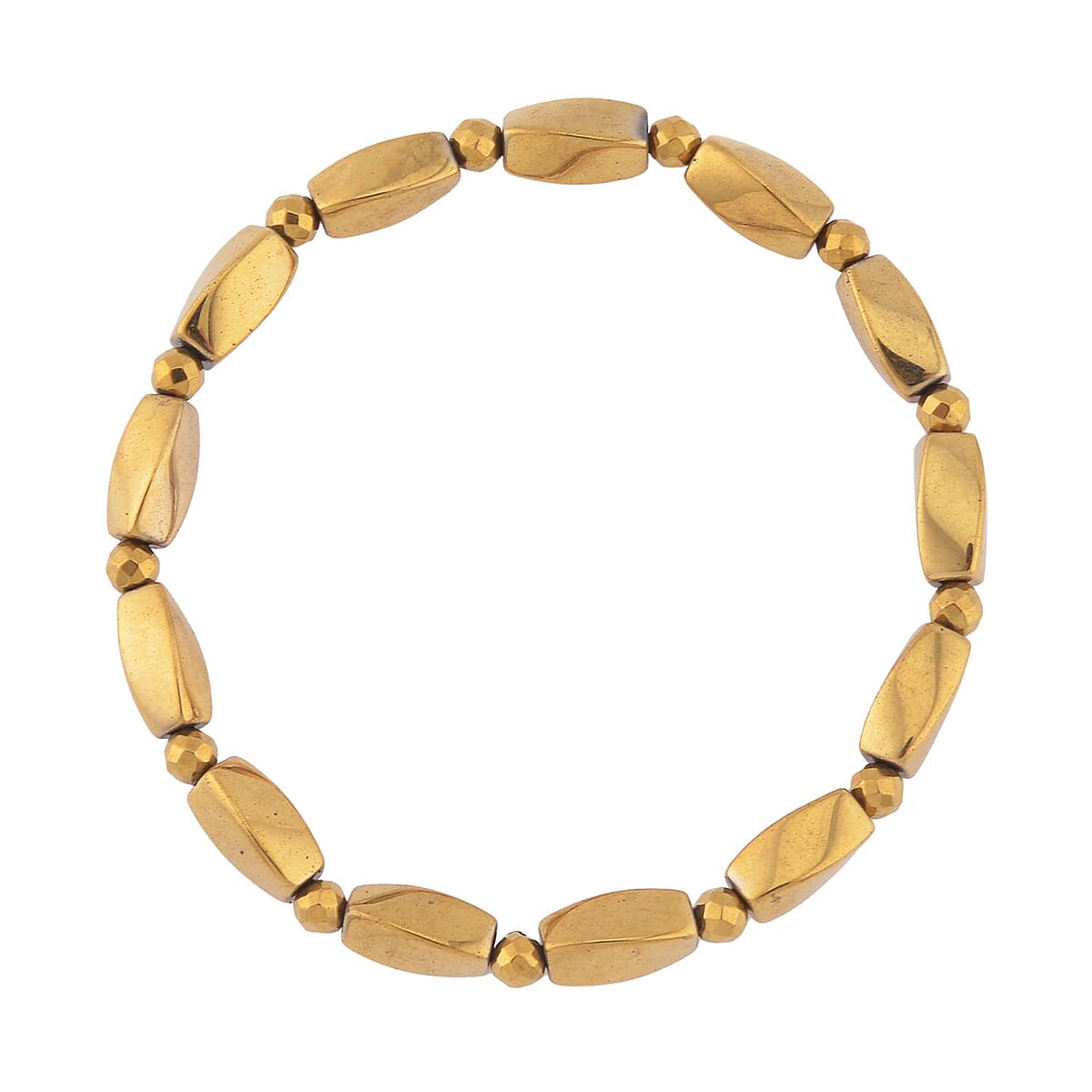 Yellow Gold Plated Hematite Beaded Stretch Bracelet 82.50 ctw