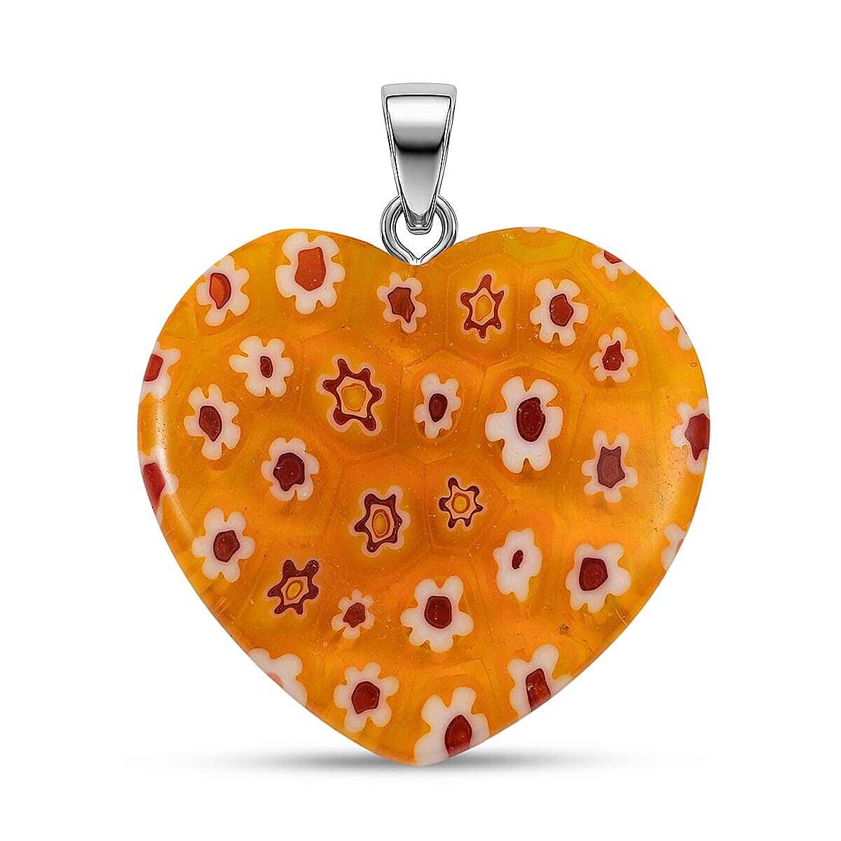 Yellow Murano Style Heart Pendant in Silvertone with Stainless Steel Necklace (20 Inches)