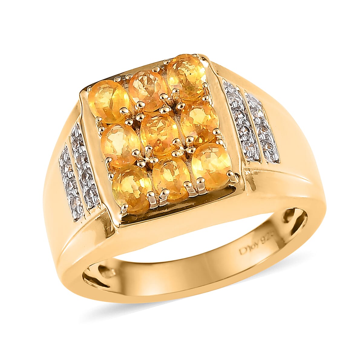 Yellow Sapphire and White Zircon Men's Ring in Vermeil Yellow Gold Over Sterling Silver (Size 14.0) 2.50 ctw