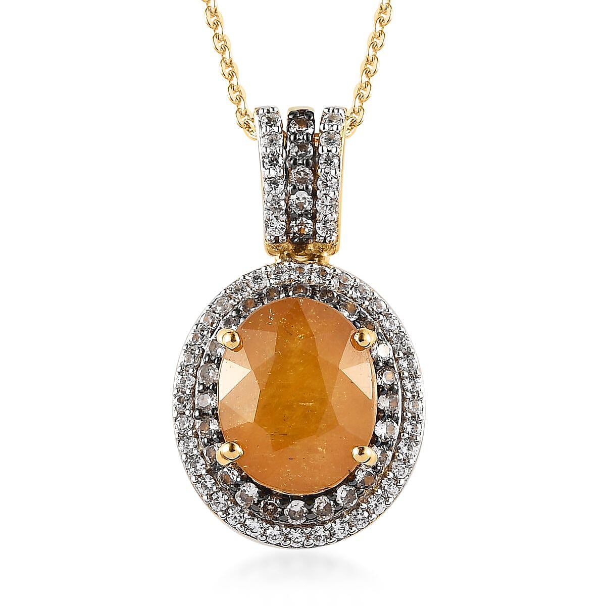 Yellow Sapphire (FF), White and Champagne Zircon Halo Pendant Necklace 20 Inches in Vermeil Yellow Gold Over Sterling Silver 4.60 ctw