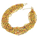 Yellow Seed Beaded Multi Layered Necklace 20-22 inches in Goldtone