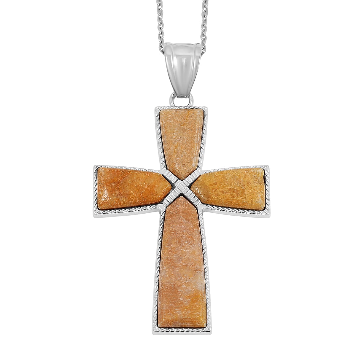 Refine your look with this yellow serpentine pendant with 316L stainless steel necklace. This elegant cross pendant necklace necklace features smooth yellow serpentine with warm, natural tones. The silvertone finish and stainless steel chain offer lasting style for everyday wear or meaningful gifting.