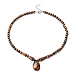 Yellow Tiger's Eye 158.50 ctw Beaded Tribal Necklace 18-20 Inches in Silvertone