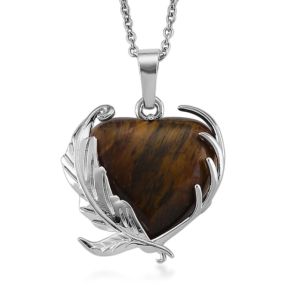 Yellow Tigers Eye 18.00 ctw Pendant in Silvertone with Stainless Steel Necklace 20 Inches