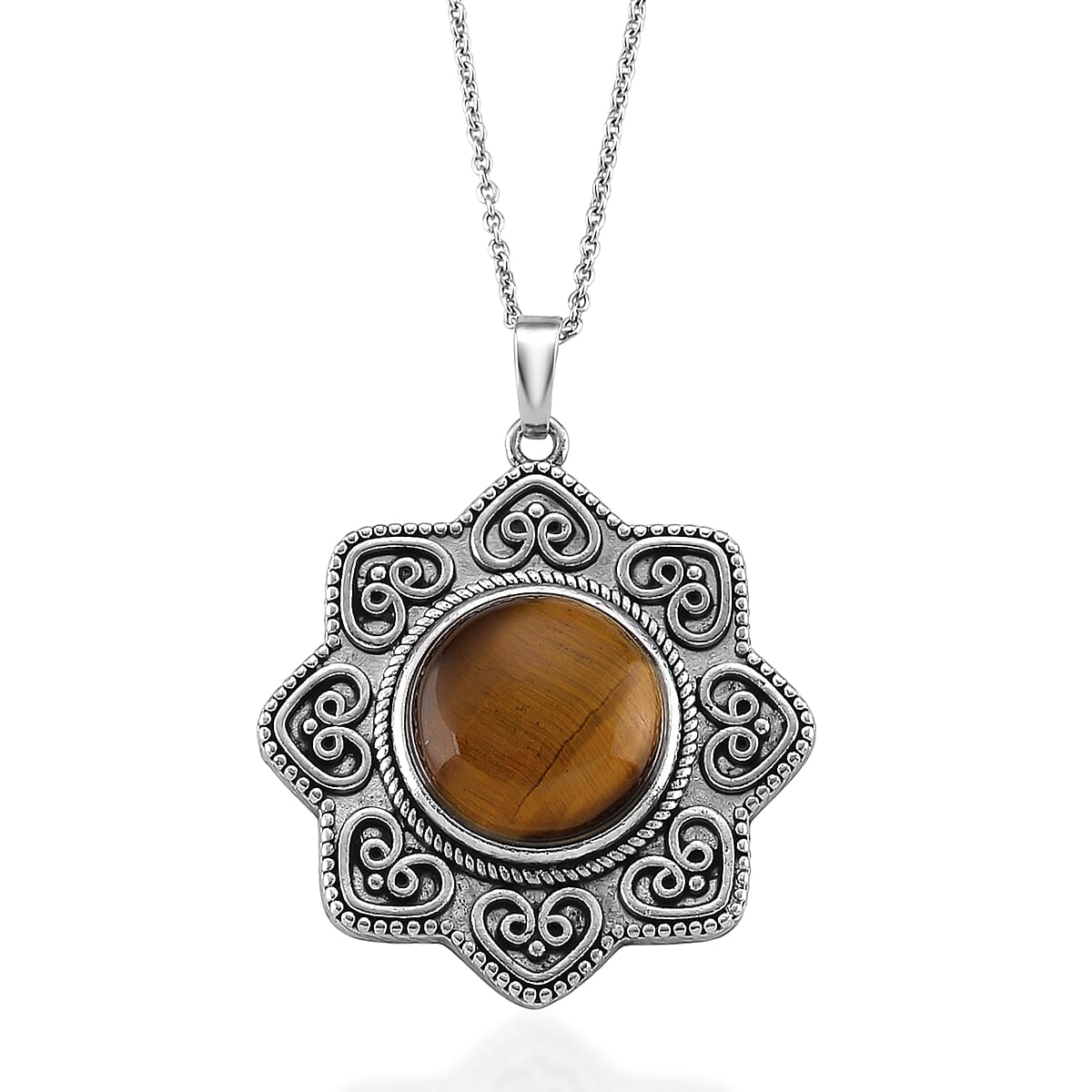 Yellow Tigers Eye 38.00 ctw Pendant in Silvertone with Stainless Steel Necklace 20 Inches