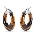 Yellow Tiger's Eye 47.00 ctw Hoop Earrings in Stainless Steel