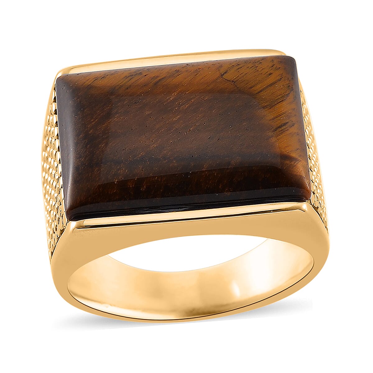 Yellow Tigers Eye 5.00 ctw Men's Ring in ION Plated YG Stainless Steel (Size 12.0)