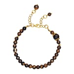 Yellow Tiger's Eye 56.50 ctw 6-10mm Beaded Anklet in Goldtone (8-9.5In)