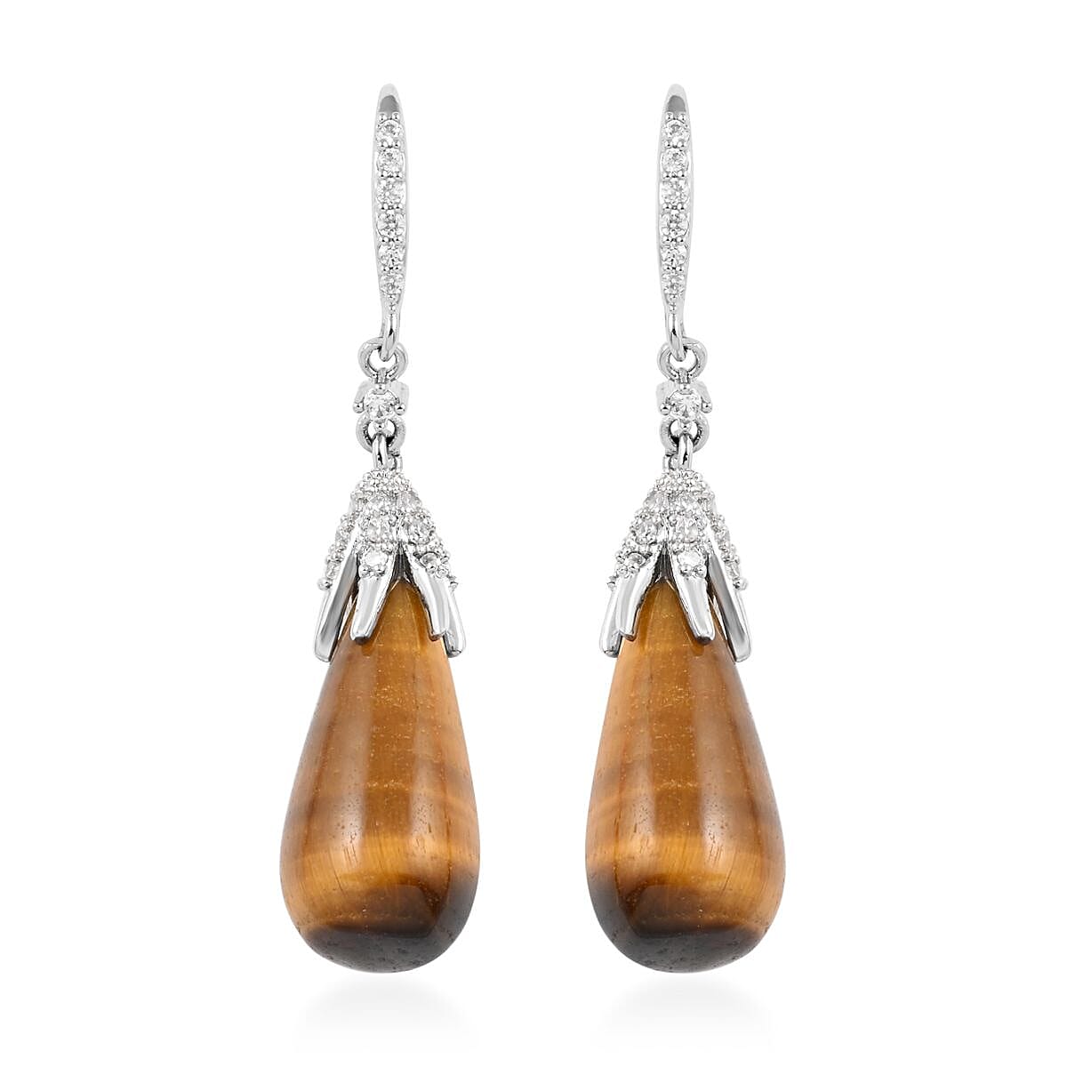 Yellow Tiger's Eye and White Zircon Earrings in Stainless Steel 24.50 ctw