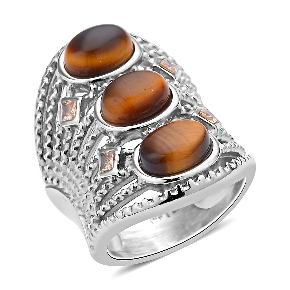 Yellow Tiger's Eye and Yellow Austrian Crystal Ring in Stainless Steel (Size 9.0) 30.00 ctw